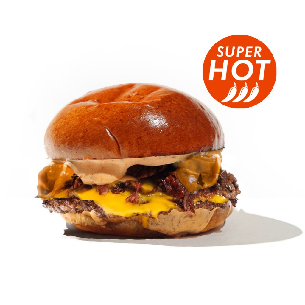 1x (70g) hovězí, čedar, slanina, Habaneros, Habanero majonéza