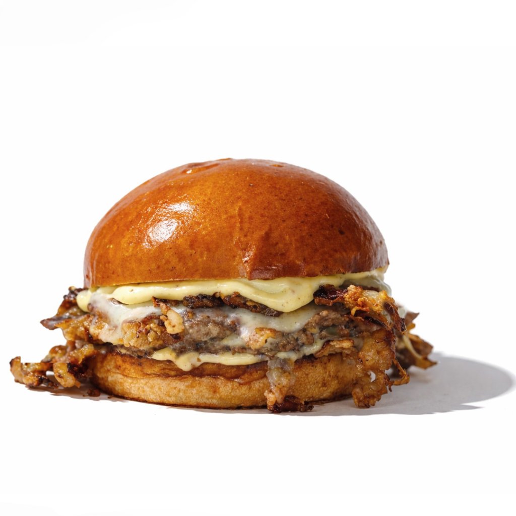 1x hovězí, gruyere, frizzled cibule, karamelizovaná french cibule, dijo-aioli