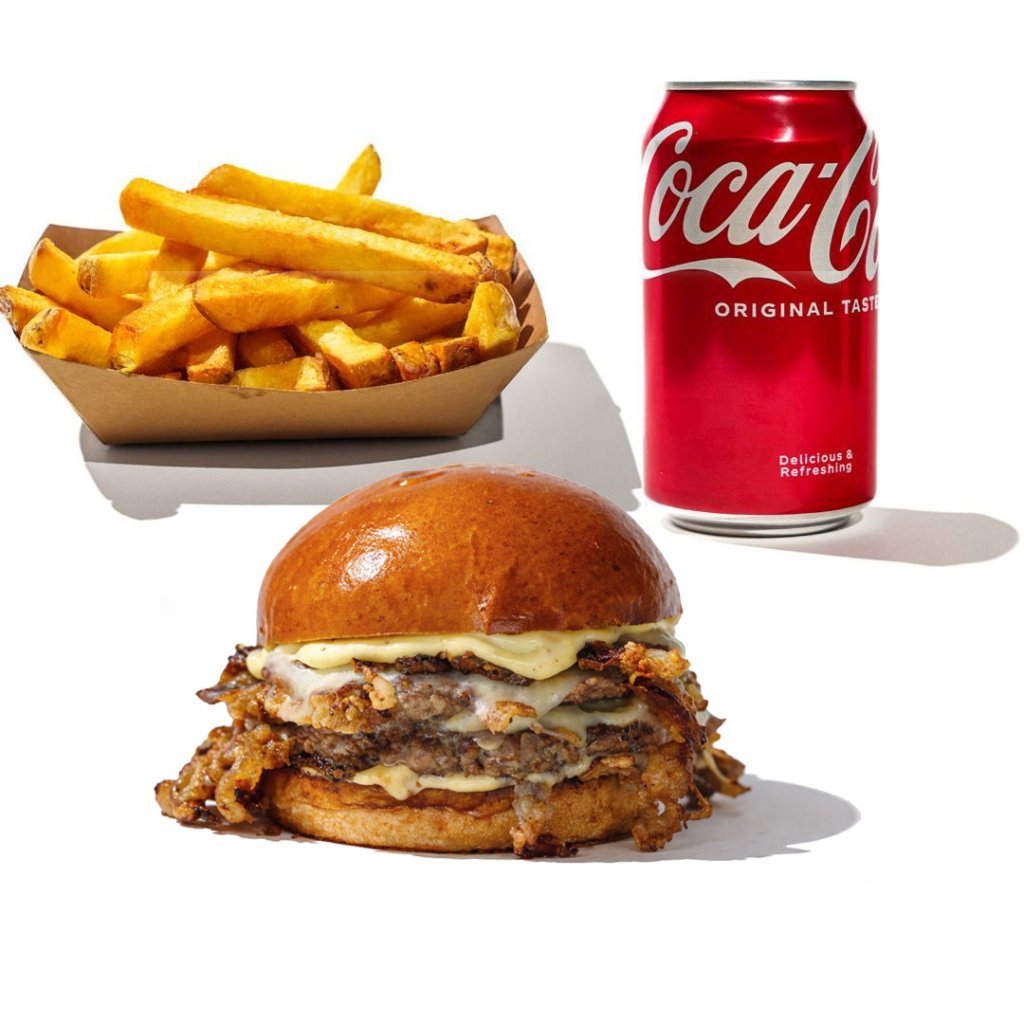 Fulton burger + příloha (hranolky nebo coleslaw) + nápoj